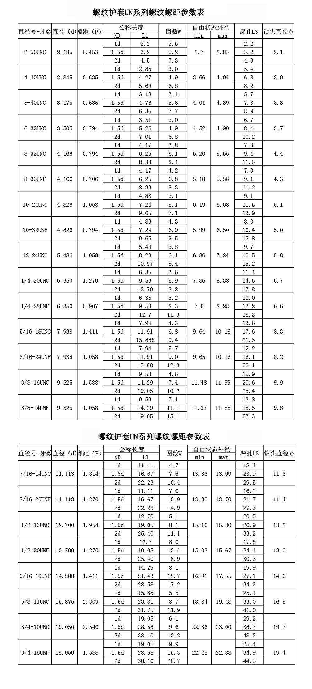 鋼絲螺套的公稱長度為安裝后長度,因為鋼絲螺套就長度上而言,在自然狀態下是處于收縮的,所以當鋼絲螺套裝進底孔后,會隨著底孔螺紋伸展開來,此時鋼絲螺套形成的螺紋深度,就是公稱長度。在加工鋼絲螺套底孔時,底孔攻牙的有效螺紋深度,-定要大于螺套的公稱長度,確保螺套包裹于底孔螺紋之內。
